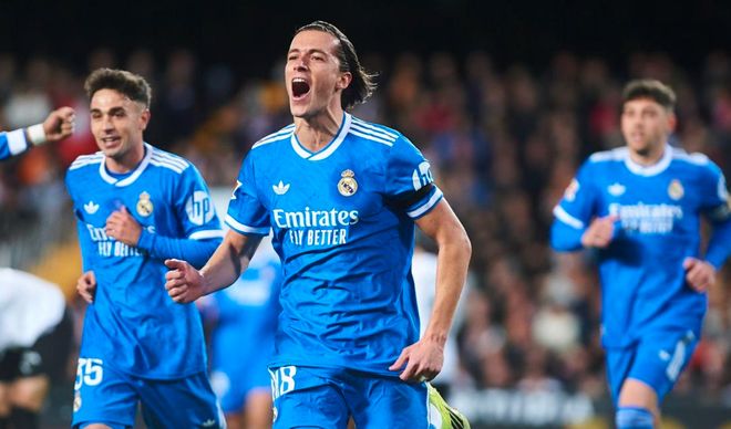 皇馬征服了客場,以2-0完勝瓦倫西亞。這場比賽沒想到打破僵局的是一名后衛卡雷拉斯,他依靠個人能力一條龍帶球突破后低射破門。這是非常不可思議的進球方式,比很多前鋒的進球都要漂亮。這粒進球讓皇馬能夠踢得更加從容。在比賽最后時刻,大舉壓上的瓦倫西亞被皇馬打穿防線。卜拉欣-迪亞斯助攻姆巴佩進球,殺死比賽。