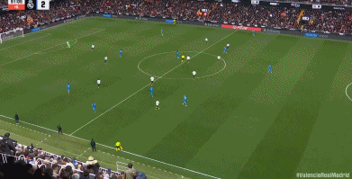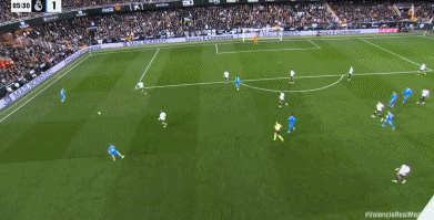 第17分鐘,皇馬全線壓上,貢薩洛禁區(qū)前沿斜塞,姆巴佩禁區(qū)內(nèi)接球調(diào)整一步近距離大力推射,門(mén)將迪米特列夫斯基奮勇將球擋出。第27分鐘,皇馬中路壓上,姆巴佩連續(xù)擺脫防守斜塞右側(cè),希門(mén)尼斯跟進(jìn)獲得很好的機(jī)會(huì),只是他大力推射也是被迪米特列夫斯基奮力將球擋出。易邊再戰(zhàn)皇馬繼續(xù)猛攻,但還是遲遲未能取得進(jìn)球,直到第64分鐘,皇馬左路壓上,郝伊森禁區(qū)前沿直塞,卡雷拉斯禁區(qū)邊上接球,面對(duì)瓦倫西亞5,6人包圍,卡雷拉斯仍然是猛猛地往里突破,雖然被擋了一下,但還是硬過(guò)了4人,搶在另外2人包夾之前大力低射,皮球直入球門(mén)右下死角,皇馬1:0打破僵局。