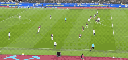 兩分鐘后,西漢姆聯(lián)還以顏色,薩默維爾禁區(qū)前橫向盤帶后兜射遠(yuǎn)角,拉門斯雙龍出海,將球擊出。
