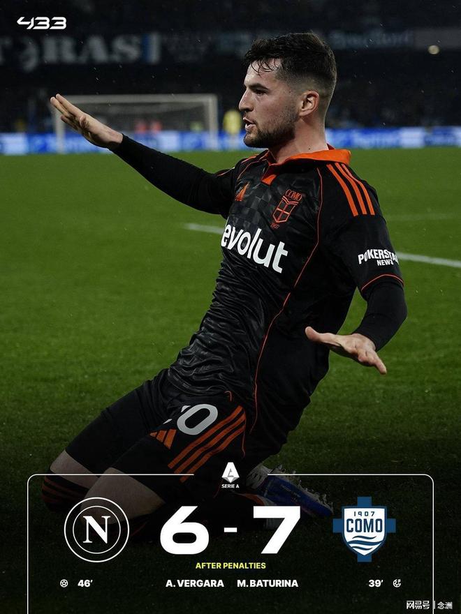 意杯1/4決賽,那不勒斯點球7-8科莫,無緣四強。奧利維拉送點,巴圖里納主罰命中,霍伊倫助攻維爾加拉破門扳平比分。雙方進入點球大戰(zhàn),那不勒斯的盧卡庫、洛博特卡點球不進,科莫佩羅內(nèi)點球被撲。