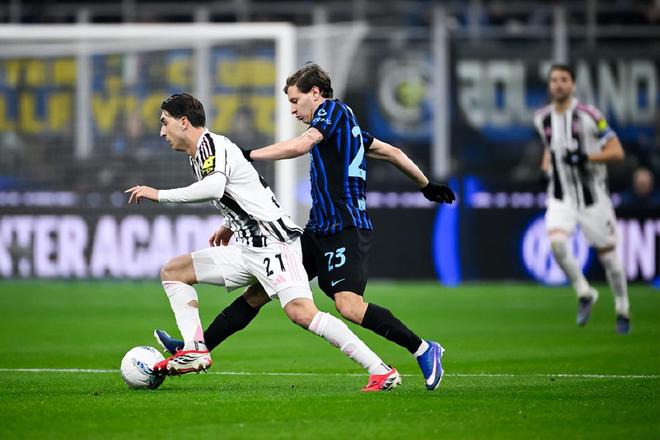 第30分鐘,伊爾迪茲左路一對一自信突破兜射遠角,索默獻出精彩的飛身精彩撲出來球;第34分鐘,蘇契奇禁區前沿持球靈巧擺脫過人橫敲,勞塔羅不停球撞射發力過猛打偏;第41分鐘,迪馬爾科開出角球,小圖拉姆高高躍起頭球攻門被迪格雷戈里奧神勇撲出,洛卡特利解圍擊中自家立柱,尤文隨即展開反擊卻被巴斯托尼精準斷球,卡盧盧背后拉人犯規拿到第二張黃牌被紅牌罰下。