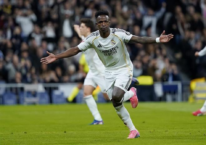 下半場回來第48分鐘,維尼修斯左路穿襠過人戲耍阿蘭布魯突破到禁區,后者惱羞成怒背后鏟人犯規,皇馬再次獲得點球,維尼修斯又一次節奏變化騙過雷米羅命中,4:1!維尼修斯點射梅開二度,自從月初終結西甲進球荒后,近3輪打進3球;賽季進球數也提高到了10球9助攻。