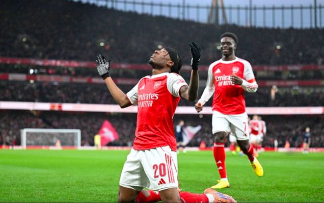 第23分鐘,馬杜埃凱在邊路的過(guò)人拍案叫絕,薩卡送出傳中,熱蘇斯包抄,泰勒不慎自擺烏龍。