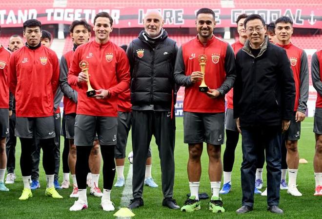賽前發(fā)布會(huì)結(jié)束后,主教練穆斯卡特與球員楊希,特意為現(xiàn)場(chǎng)媒體記者送上新春禮物 —— 身著新春服飾的俱樂部吉祥物 “伊戈”。此外,俱樂部還為兩名入選 2025 賽季中超聯(lián)賽最佳陣容的球員舉行頒獎(jiǎng)儀式,總經(jīng)理沙良昌為外援萊昂納多和維塔爾頒發(fā)獎(jiǎng)杯,鼓勵(lì)兩人再接再厲,新賽季繼續(xù)為球隊(duì)貢獻(xiàn)力量。