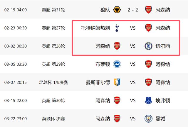 打完熱刺之后,阿森納將回到主場迎戰切爾西,這同樣的一場苦戰。自從羅塞尼爾上任之后,切爾西的表現有了很大提升,他們如今正全力搶分爭四,哪怕客場作戰,切爾西也不會讓阿森納輕易拿到3分。過去5輪比賽,切爾西4勝1平,是英超同期表現最好的球隊之一,而阿森納最近7輪聯賽,只擊敗過利茲聯和桑德蘭2支升班馬,面對利物浦、諾丁漢森林、曼聯、布倫特福德和狼隊,阿森納僅僅拿到4分。很顯然,阿森納如今不在最佳狀態,無論面對熱刺還是切爾西,阿森納都沒有必勝的把握。