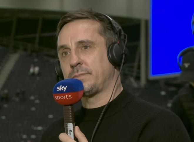 北京時間2月23日,英超第27輪,托特納姆熱刺1-4阿森納。在天空體育的播客節目中,內維爾對本場比賽進行了分析。