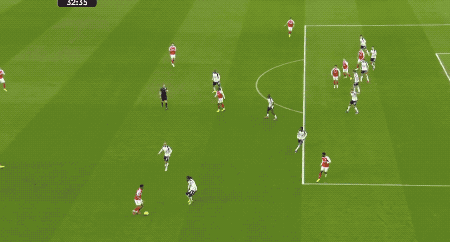 第32分鐘,薩卡晃過薩爾后傳中,埃澤停球不太利索,但迅速凌空抽射,阿森納取得領先。