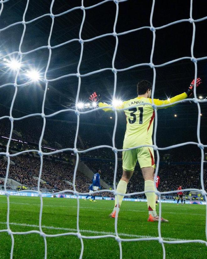 雙方均擺出4-2-3-1陣型,曼聯主打控球推進與邊路聯動,埃弗頓則立足密集防守,專注于快速反擊與定位球機會。上半場比賽,曼聯雖掌握控球主動權,卻始終難以撕開埃弗頓的密集防線,場面略顯僵持。第5分鐘,場上率先出現威脅時刻,庫尼亞的射門意外打在隊友阿瑪德身上,阿瑪德反應迅速跟進掃射,皮球被埃弗頓門將皮克福德奮力撲出,隨后塔科夫斯基在門線前完成關鍵解圍。隨后不久達洛特在禁區右側送出似傳似射的弧線球,皮克福德再度發揮神勇,將球穩穩撲出。