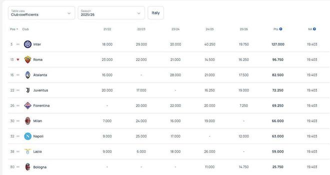 可即便如此,這些球隊依然是扶不起的阿斗,完全跟不上國米的搶分節(jié)奏!而國米之前3年2進歐冠決賽,就是整個意甲歐冠戰(zhàn)績最好的球隊呀,甚至是放寬到最近5年同樣是歐戰(zhàn)積分最高的球隊,遙遙領(lǐng)先于尤文、米蘭和那不勒斯等球隊,而米蘭所謂的歐冠榮光也只能停留在“想當(dāng)年”里面了!