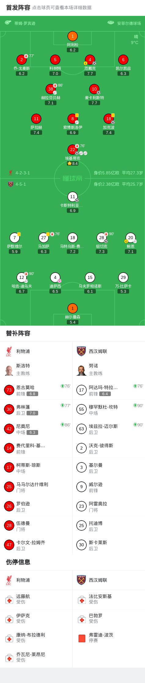第82分鐘,弗林蓬傳中造成迪薩西自擺烏龍,利物浦5-2西漢姆聯(lián)