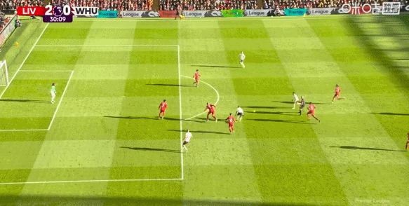 第24分鐘,索博斯洛伊開出角球,范戴克頭球建功,利物浦2-0西漢姆聯(lián)