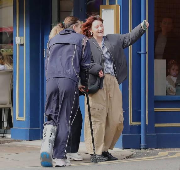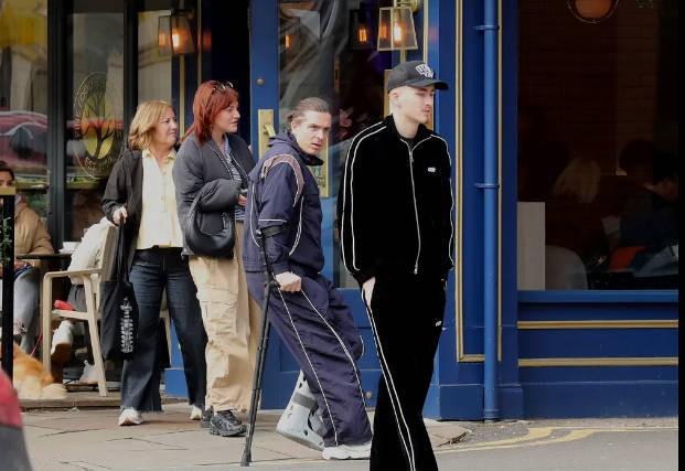 據報道,當地時間本周日,格拉利什被拍到穿著保護靴、拄著拐杖外出,隨后有兩名球迷請求和他合照,他也答應了,隨后拄拐離開。