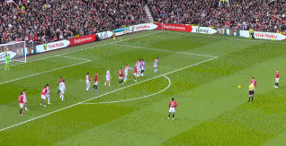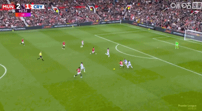 第4分鐘,水晶宮左側角球罰向禁區,約羅防守漏人,拉克魯瓦頭球攻門得手,水晶宮1-0曼聯。