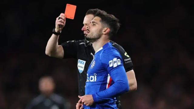 桑切斯的投訴,進而引發了內托的抱怨,對裁判出言不遜的葡萄牙邊鋒也因此吃到黃牌,這又為比賽的另一個“轉折”埋下伏筆。3分鐘后,阿森納快速反擊,內托在緊跟馬丁內利的情況下突然“剪刀腳”放鏟對手,吃到第二張黃牌就此離場。這也是切爾西連續第二輪英超吃到紅牌,本賽季28輪聯賽中的第7張,染紅率真的相當驚人。而紀律問題,在過去兩年就已經成為藍軍的一大頑疾,連續兩個賽季,他們單季英超黃牌數都過百,今年則有望刷新更多紀錄。順帶一提,本場切爾西又有4人拿到黃牌,其中帕爾默和海托的戰術犯規也曾讓槍手擁躉大為不滿:如果遵循有利原則不立刻吹停比賽,阿森納應該還可以獲得兩次很好的反擊、甚至是單刀機會。
