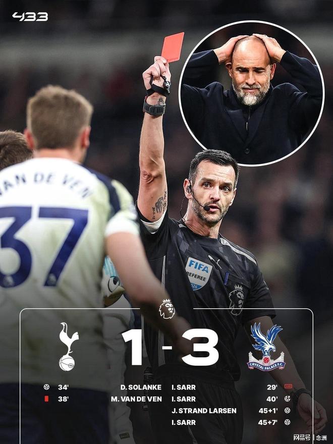 英超第29輪,熱刺主場1-3負于水晶宮,5連敗+11輪不勝,積29分僅領先降級區1分。薩爾進球被吹,索蘭克建功,范德芬送紅點,薩爾點射命中+雙響,拉爾森破門,丹索頭球攻門、索蘭克小角度射門被撲。