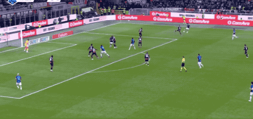 進球后的紅黑軍團氣勢大漲。第39分鐘,普利希奇在左路連續突破后下底傳中,薩勒馬克爾斯門前搶點射門,只可惜稍稍高出橫梁,國米再度逃過一劫。半場結束,AC米蘭帶著1-0的領先優勢進入更衣室。