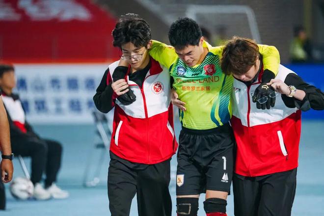 然而,這位守門員并未選擇離場,在接受現(xiàn)場醫(yī)療團隊冰敷處理后,強忍傷痛重新回到賽場,繼續(xù)完成后續(xù)比賽。談及帶傷堅守的原因,區(qū)志東笑著說道:“不想第一次踏上這個賽場就被抬著下場,球隊需要我的時候,必須扛住。”簡單的話語,盡顯責任與擔當。