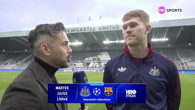 歐冠1/8決賽首回合,紐卡將主場(chǎng)對(duì)陣巴薩,紐卡后衛(wèi)劉易斯-霍爾賽前接受了TNT體育墨西哥頻道的采訪。