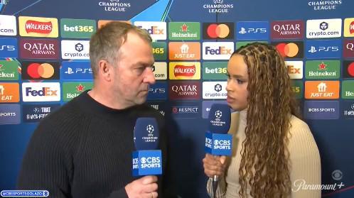 歐冠1/8決賽首回合,巴薩客場1-1戰平紐卡,巴薩主帥弗里克賽后接受了CBS體育的采訪。