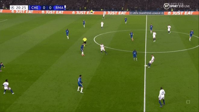 當維尼修斯能與隊友配合并前插身后時,他在肋部區域就能構成威脅,就像下圖中他在2021-22賽季四分之一決賽對陣切爾西時助攻本澤馬那樣。