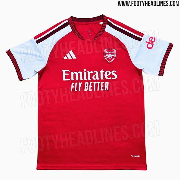 從曝光的圖片來看,這件球衣主體依舊使用阿森納標志性的紅色,但在細節處加入了更深的酒紅色元素。球衣的衣領、袖口以及肩部阿迪達斯經典“三條紋”中的中間一條,均采用酒紅色設計,與主體紅色形成對比,增加視覺層次。