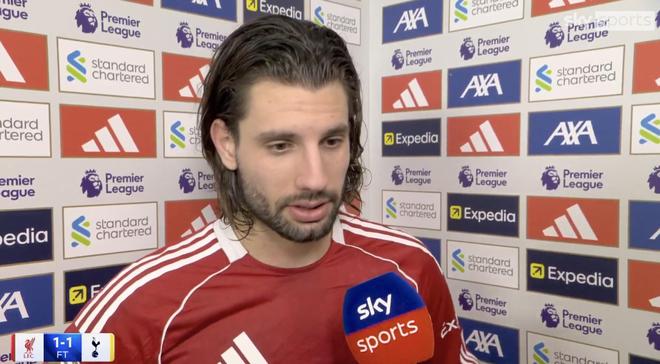 英超第30輪,利物浦主場1-1戰平熱刺,此役打入一粒任意球的利物浦中場索博斯洛伊賽后接受了天空體育的采訪。