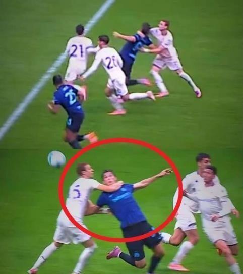 本賽季意甲第10輪,國米客場2比1絕殺維羅納的比賽中。在這粒幸運烏龍絕殺2分鐘前,國米通過前場配合,成功將球送到皮奧埃斯波西托腳下,國米小將隨即強勢突入維羅納禁區內,正當他準備射門之際,維羅納補防的后衛貝拉科沙明顯在自家禁區內伸手拉倒皮奧,這樣一個明顯犯規動作,主裁判居然毫無表示,藍黑軍團就這樣再次無緣點球。