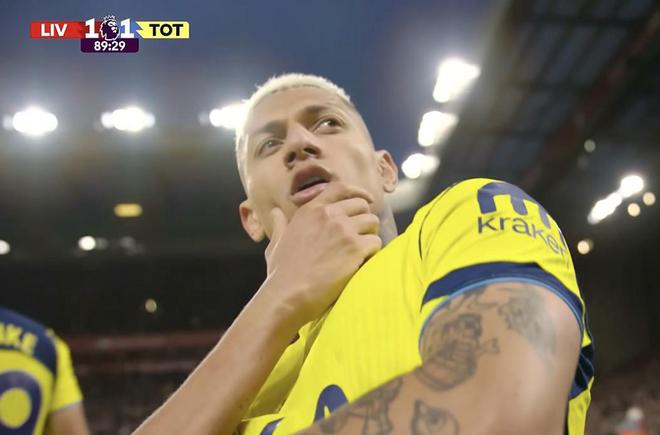 此役客場對陣利物浦,首發出戰的里沙利松在比賽第90分鐘破門,幫助熱刺將比分扳為1-1。